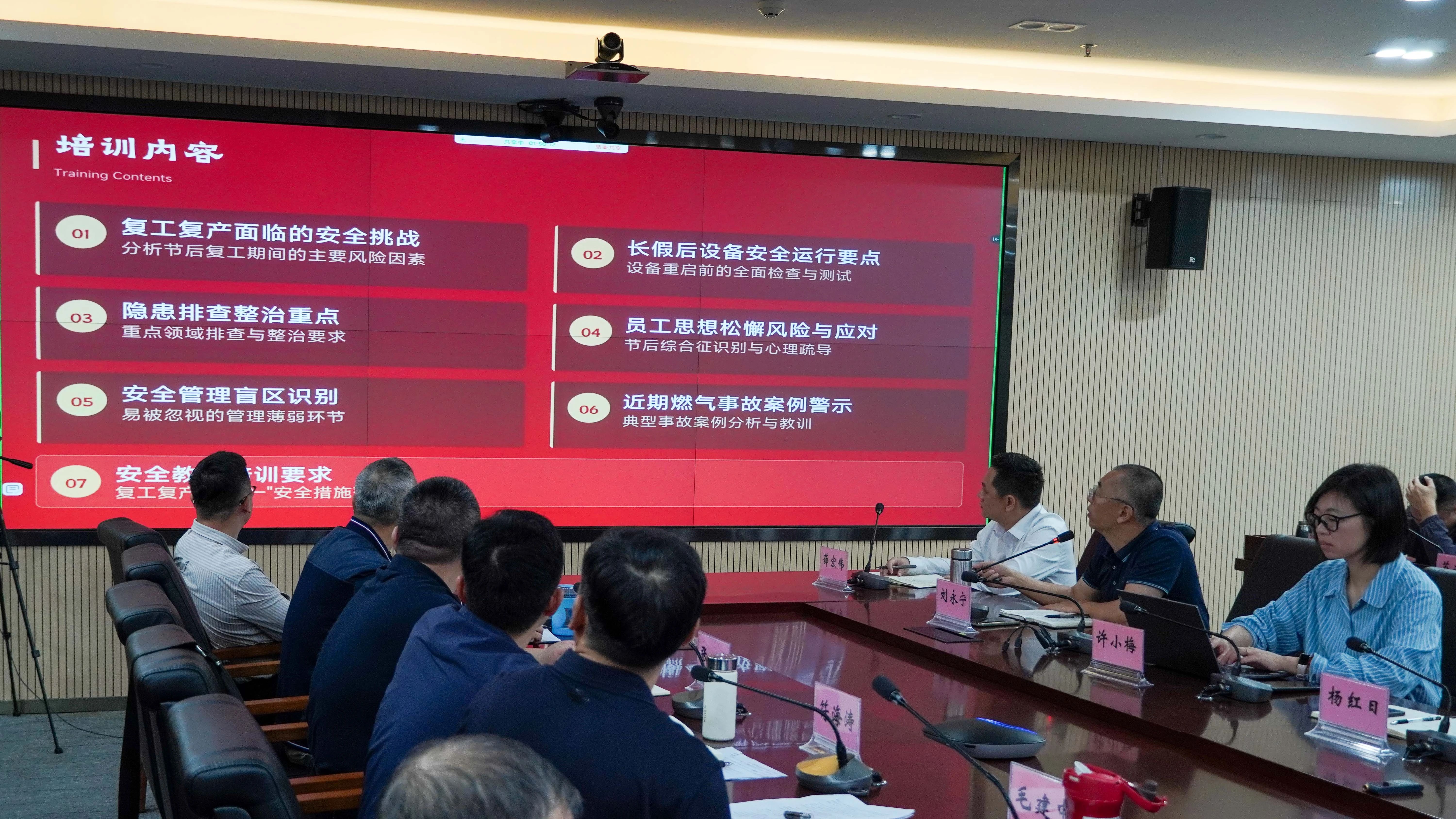 會(huì)上,各單位匯報(bào)復(fù)工復(fù)產(chǎn)準(zhǔn)備情況及安全生產(chǎn)工作部署進(jìn)展。海南民生燃?xì)獍布疾扛笨偨?jīng)理劉永寧圍繞節(jié)后復(fù)工復(fù)產(chǎn)面臨的安全挑戰(zhàn)、長(zhǎng)假后設(shè)備安全運(yùn)行要點(diǎn)、隱患排查整治重點(diǎn)、員工思想松懈風(fēng)險(xiǎn)與應(yīng)對(duì)、安全管理盲區(qū)識(shí)別、安全教育培訓(xùn)要求及典型事故案例七大板塊,開展復(fù)工復(fù)產(chǎn)安全教育專題培訓(xùn),為新一年安全工作筑牢思想根基。